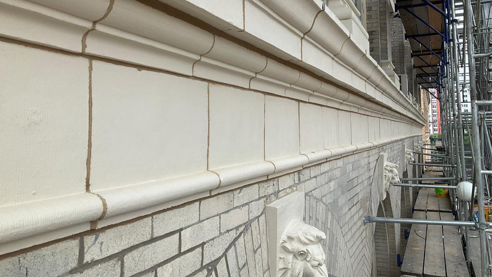 Scope of Repairs: Masonry replacement, terra cotta repair and replacement, limestone repairs, historic repointing and coating.